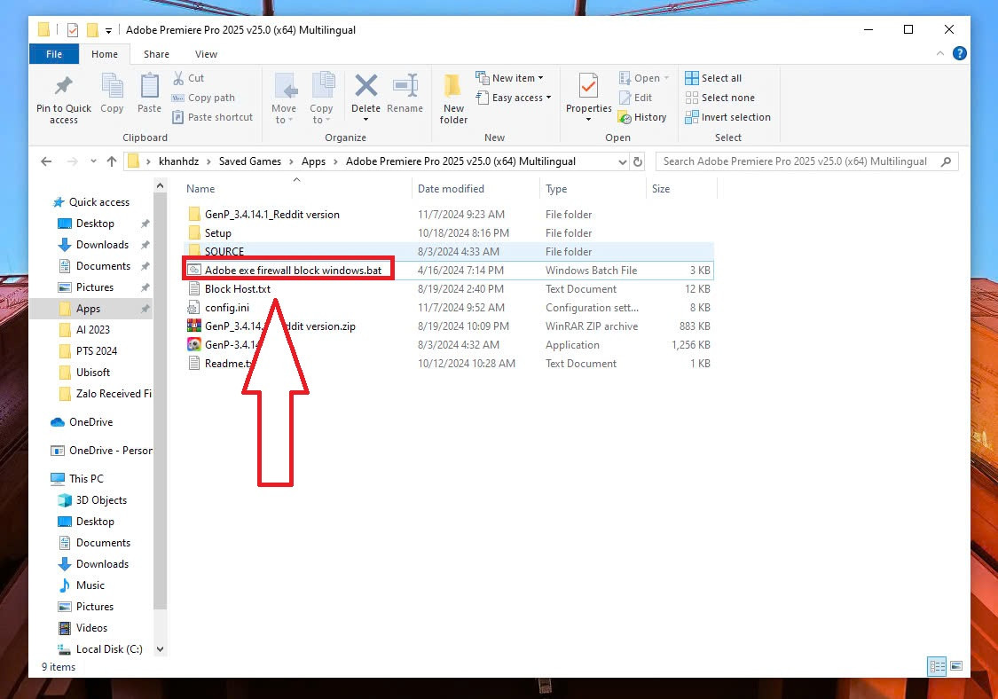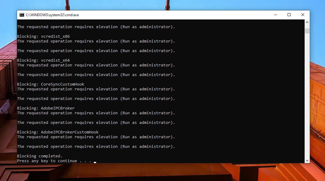 Bước 6: Tiếp tục chạy tệp “Adobe exe firewall block windows.bat”.